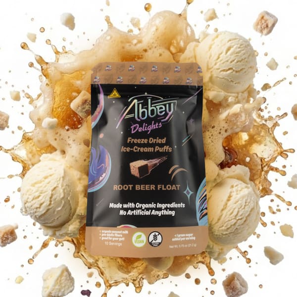 "Experience the magic of Abbey Delights with our melt-in-your mouth, cannabis infused, freeze dried ice-cream puffs. Each bite is crafted from organic ingredients, ensuring a clean, guilt-free indulgence that's out of this world."